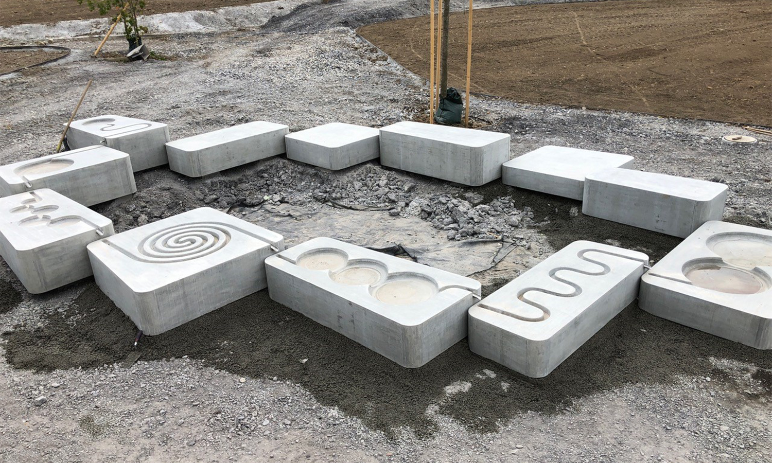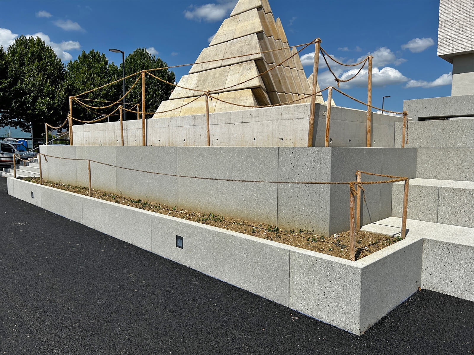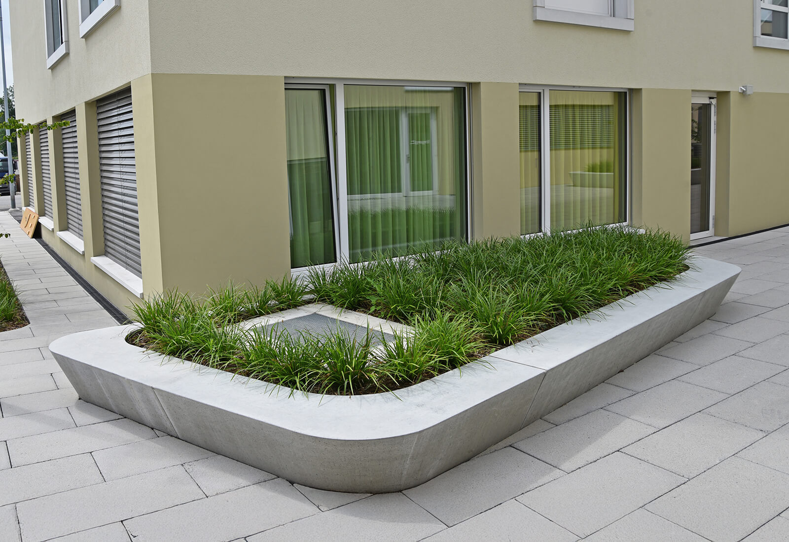Betonelemente mit Doppelfunktion als Sitz- und Pollerelement