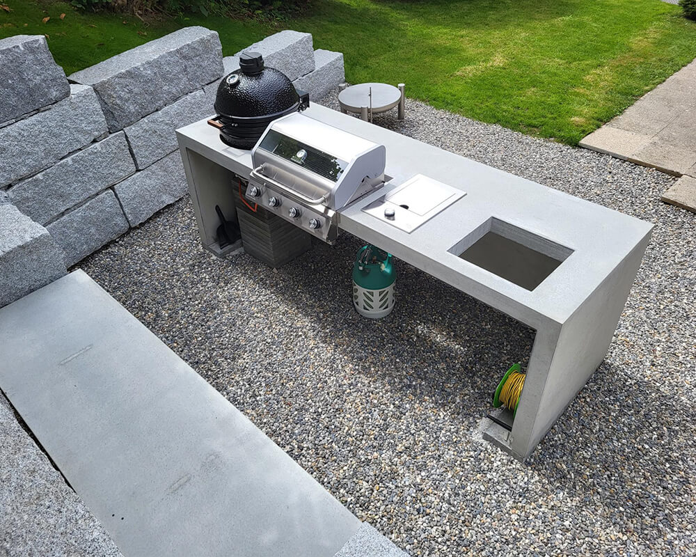 Outdoorküche aus Beton mit Aussparung für Green Egg