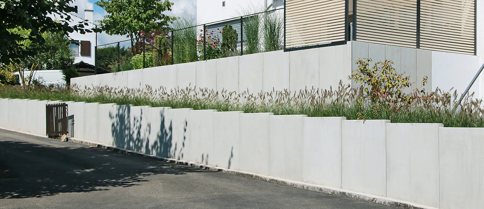 Mit Einfassungen aus Beton lassen sich formschöne Abgrenzungen und schützende Bauten erstellen. Neben ihren baulichen Qualitäten überzeugen sie auch mit ihrer Funktion als Gestaltungselement.