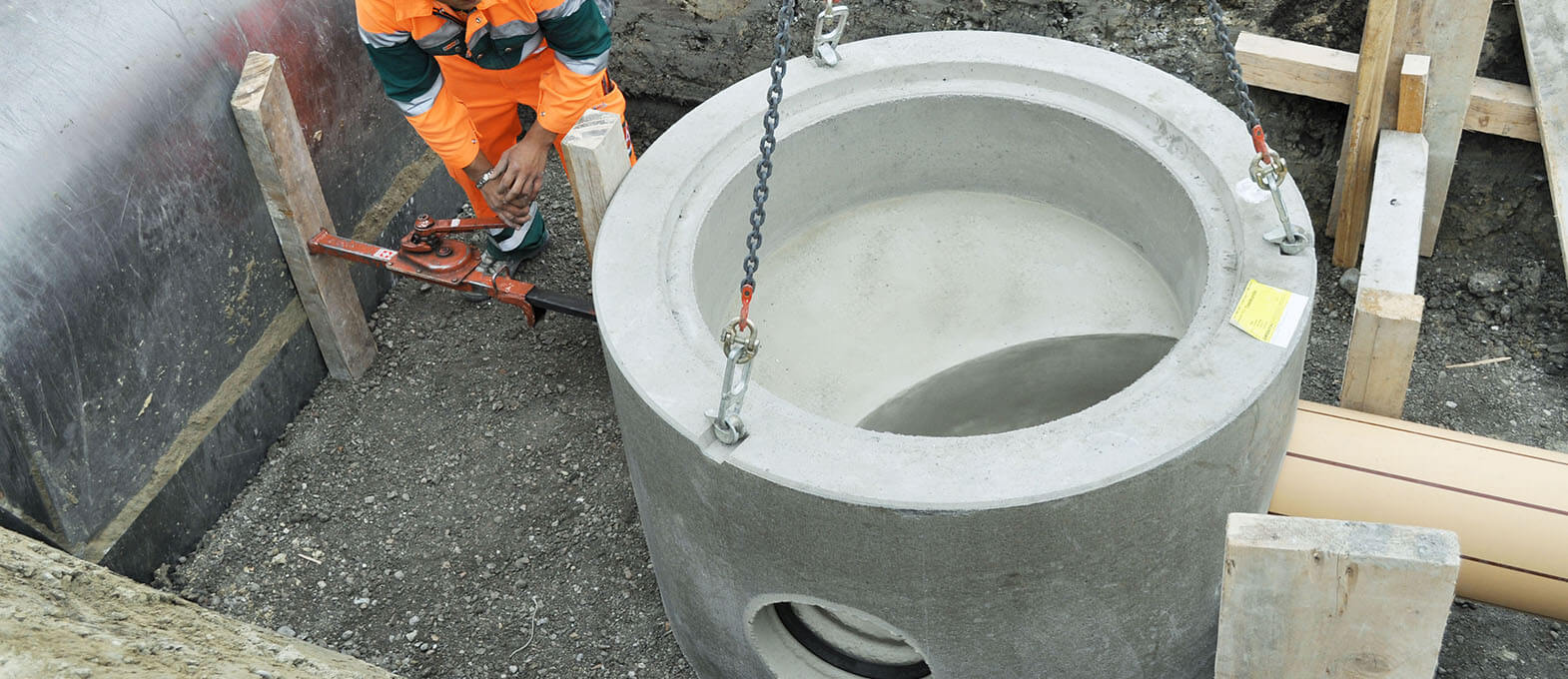 Beim Einbau von Schächten sind stets unterschiedlichste Rahmenbedingungen einzuhalten, z. B. Normen betreffend Dichtigkeit und Festigkeit. Zum Teil weisen Kantone eigene Regeln bei der Qualität und den Ausführungsdetails auf. Hauptsächlich gelten SIA- und europäisch-harmonisierte Normen wie die SIA-Norm 190 «Kanalisationen» oder die SN EN 1917 zu «Einstieg- und Kontrollschächte aus Beton, Stahlfaserbeton und Stahlbeton». Ausserdem sind die Richtlinien des Verbands Schweizer Abwasser- und Gewässerschutzfachleute (VSA) zu beachten. Das Versetzen von Schachtbauwerken muss von ausgebildetem Fachpersonal durchgeführt werden. Nur so ist die Qualität und Langlebigkeit von Kanalisationen gewährleistet. Unsere Fachleute beraten Sie bei der Wahl der Schachtbauteile sowie beim Versetzen, damit Ihre Schächte ihren Zweck voll und ganz erfüllen können.