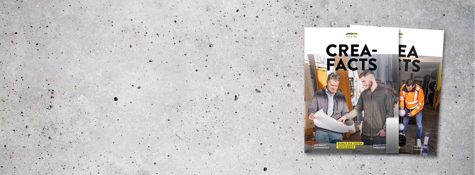 Bleiben Sie stets auf dem neuesten Stand der Baubranche mit einem Abonnement von CREAFACTS – dem Print-Magazin der CREABETON AG. Als Abonnent erhalten Sie regelmässig hochwertige Ausgaben direkt und kostenlos nach Hause geliefert, vollgepackt mit exklusiven Einblicken, tiefgehenden Analysen und inspirierenden Geschichten aus der Welt des Betons.